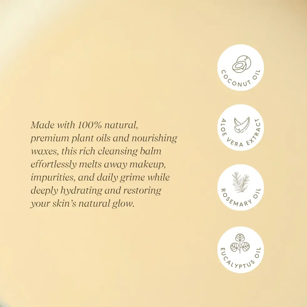 Composé à 100 % d'huiles végétales naturelles et de cires nourrissantes, ce baume fond sur la peau pour dissoudre le maquillage, les impuretés et les résidus quotidiens, tout en préservant l'équilibre naturel de la peau.