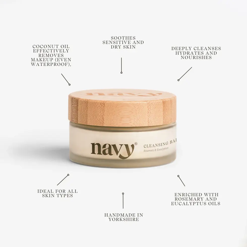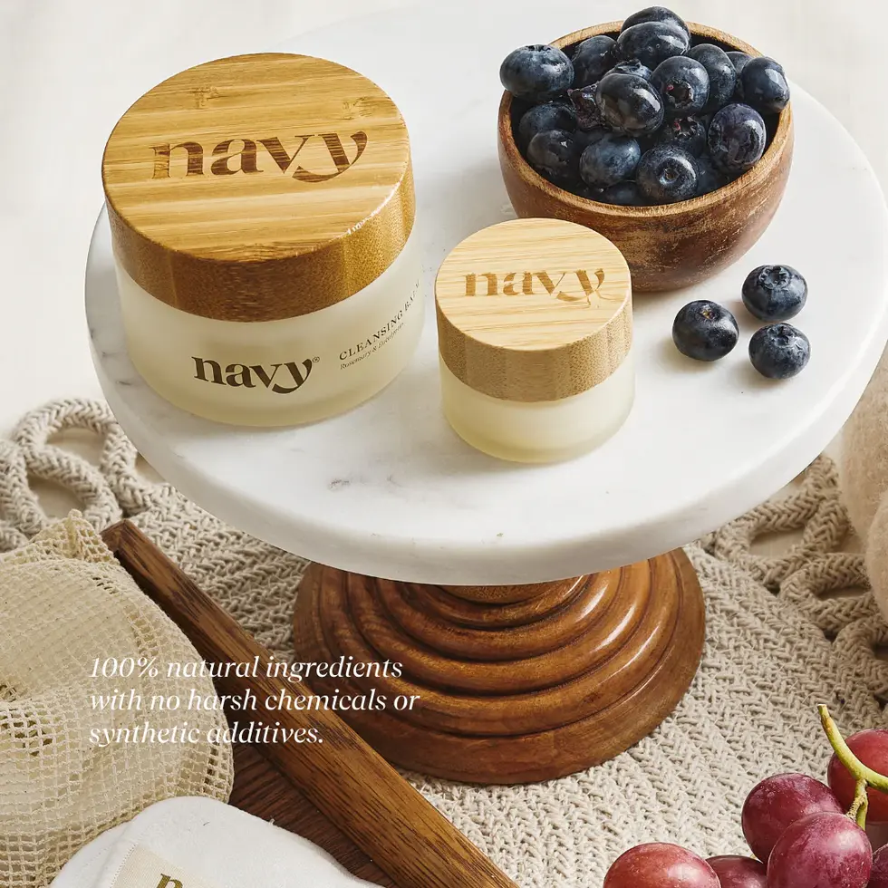 Nettoyez et prenez soin de votre peau en douceur avec le baume nettoyant visage Navy .
